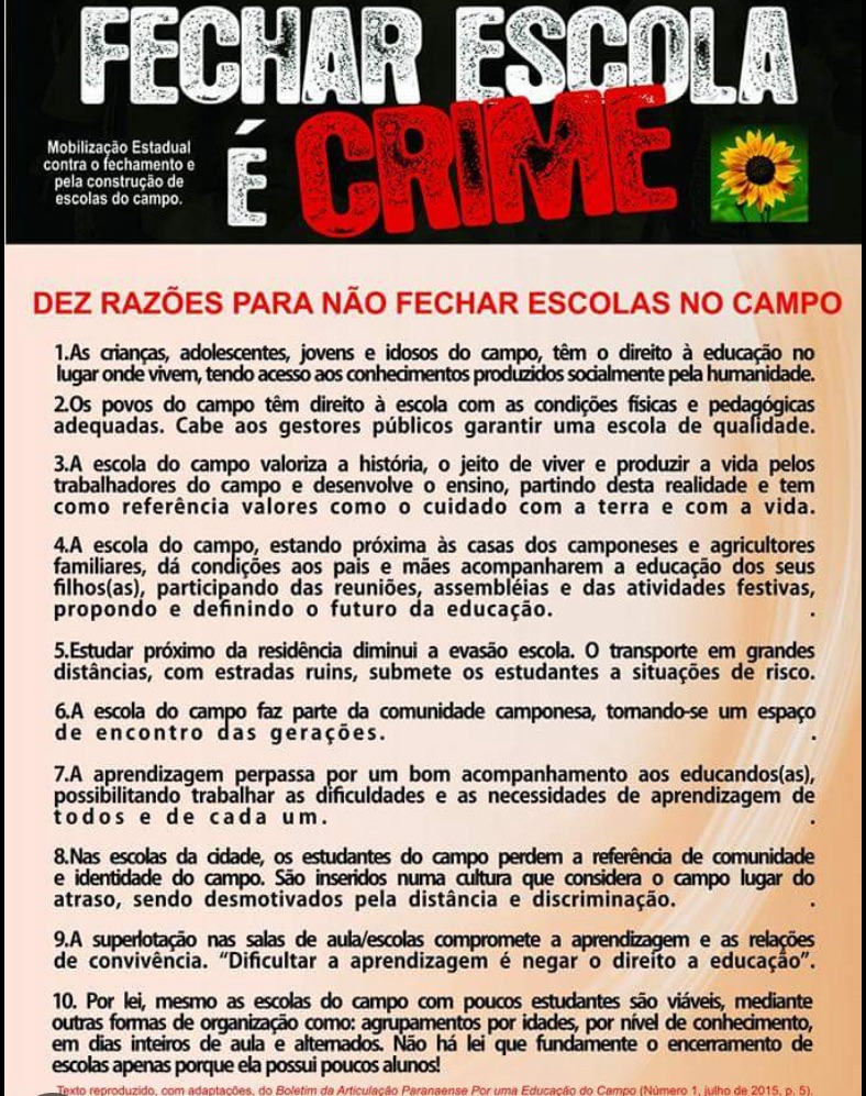 Para eles, a portaria ignora a realidade dos alunos do campo e desconsidera o impacto social e emocional do fechamento da escola.