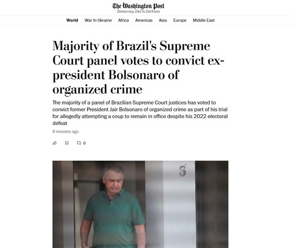 O Washigton Post relembrou que ainda falta o voto do ministro Cristiano Zanin para que o julgamento de Bolsonaro seja concluído no STF.